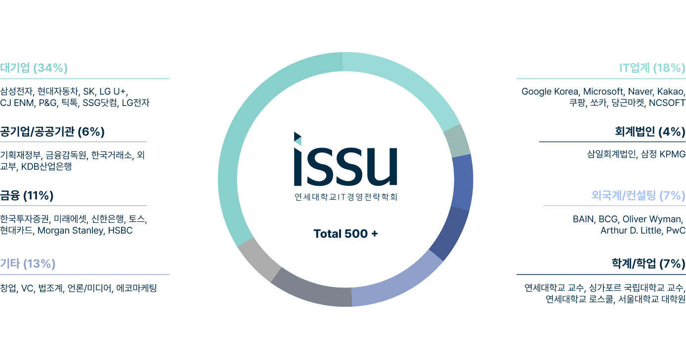 각계 각층에서 활약중인 ISSU 알럼나이는 ISSU의 가장 큰 자산이자, 든든한 버팀목입니다.